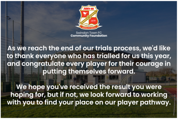 As we reach the end of our trials process, we’d like to thank everyone who has trialled for us this year, and congratulate every player for their courage in putting themselves forward.